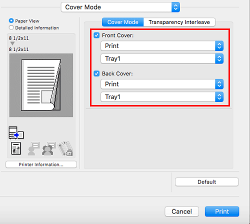 In [Cover Mode], select the [Front Cover:] and [Back Cover:] check boxes.