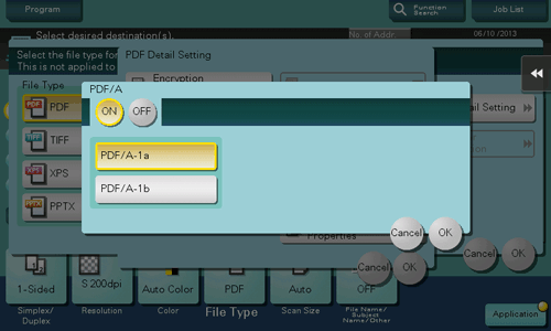Select [ON] to create a PDF file based on PDF/A.