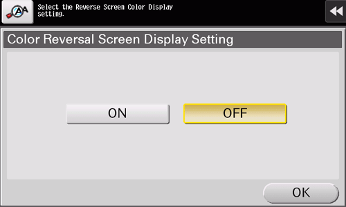 Select [Accessibility] - [Color Reversal Screen Display Setting], then select whether to invert the screen display color (default: [OFF]).
