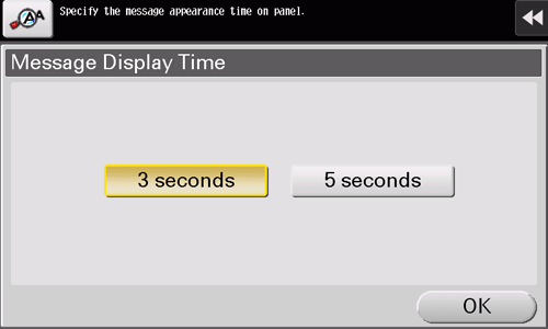 Select [Accessibility] - [Message Display Time], and select [3 seconds] or [5 seconds] (default: [3 seconds]).
