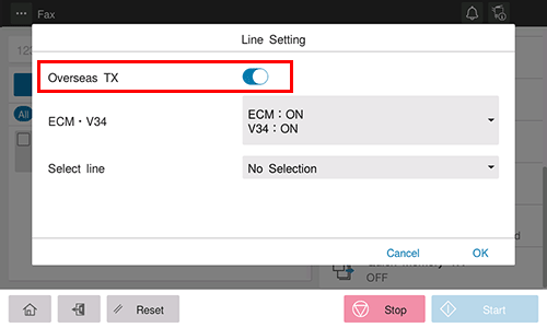 The Overseas TX Mode function reduces the transmission speed (the information transfer speed) for sending a fax.