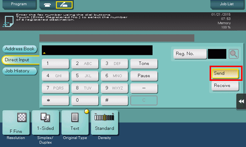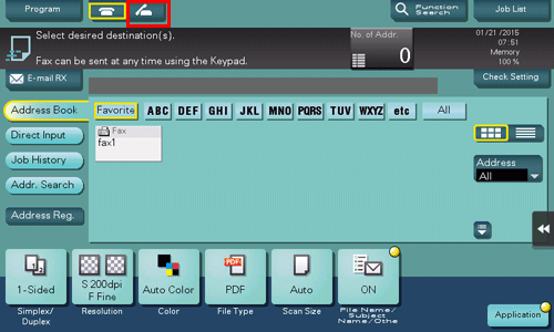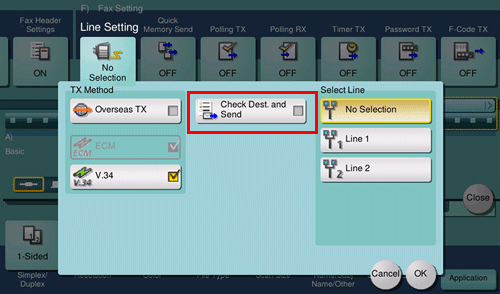 • When you set [Check Destination] to ON when registering a fax destination, the Check Dest. and Send function is performed before a fax is sent to a registered destination. For details on how to register a fax destination, refer to Here.