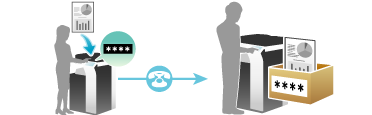Register confidential user boxes on this machine. Add the Confidential RX function to a Public, Personal, or Group User Box. Specify a communication password for Confidential RX.