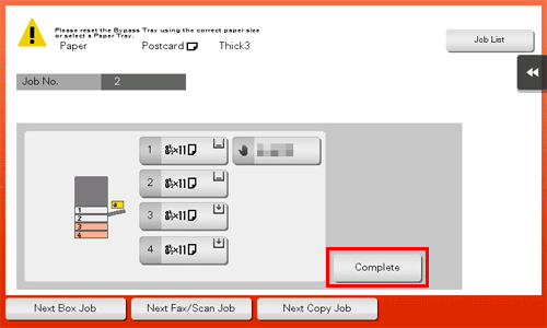 For example, by using the print command once, you can print a submission document on high-quality color paper loaded in Tray 1 and print your copy on recycled paper loaded in Tray 2.