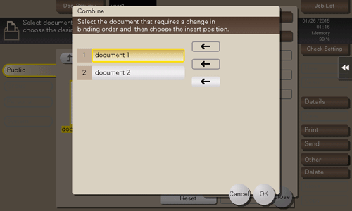 Change the printing order (Combine sequence) as needed, and tap [OK].