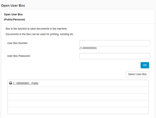 You can also open a desired User Box by entering its number directly in the [User Box Number] column.