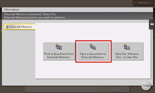 4. Tap [Save a document to External Memory.].