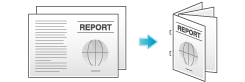 By selecting [Fold] or [Center Staple and Fold] in the [Finish] tab in combination with this function, you can create booklet-form documents by folding the printed sheets in the center or by binding them using two staples in the center.