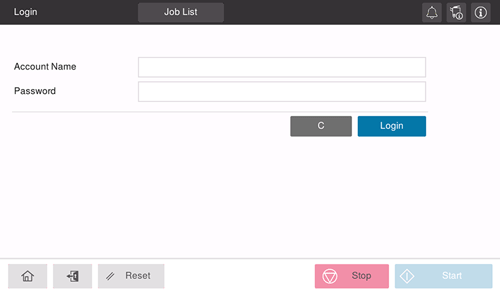 When account track is enabled on this machine, the login screen is displayed. Enter the account name and the password to perform account track.