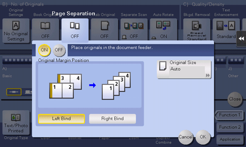 [ON]/[OFF] | Select [ON] to specify Page Separation. |