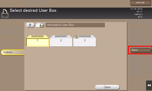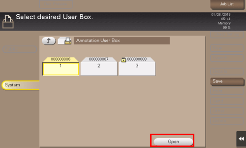 1. Select [Utility] - [Administrator] - [Box] - [System User Box List].