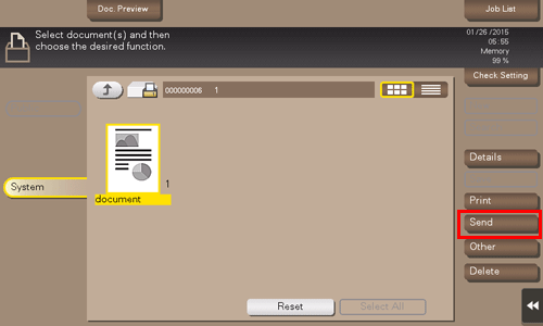 To send a file saved in a User Box to an E-mail address or computer on the network