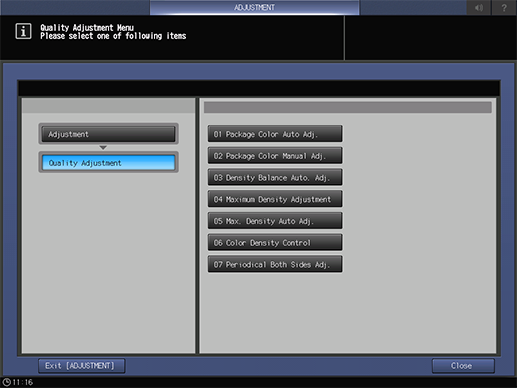 2. Press Quality Adjustment and Maximum Density Adjustment in sequence.