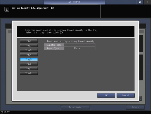 Note that the paper profile for the tray remains in the one used for registering a desired density.