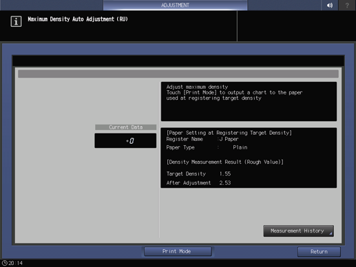 The automatically adjusted result is displayed in Current Data. This value is applied to Maximum Density Adjustment.
