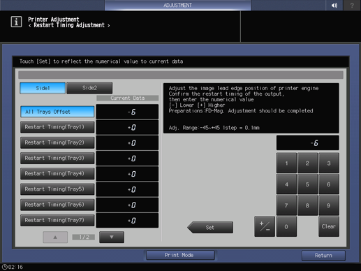 Side1, Side2: Restart Timing (Tray 1) to Restart Timing (Tray 11)