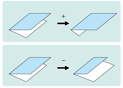 Example: In this example, make the upper output side (cover side) 2 mm shorter for A3short edge feed.
