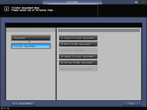 Press Finisher Adjustment on the Adjustment Menu screen.