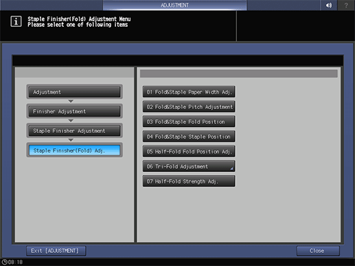 The screen returns to the Staple Finisher(Fold) Adjustment Menu screen.
