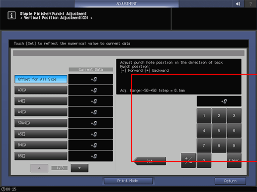 The screen returns to the Staple Finisher(Punch) Adjustment Menu screen.