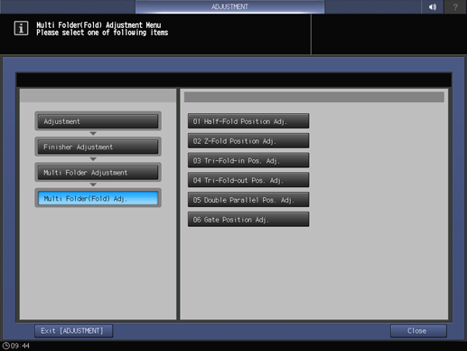 The screen returns to the Multi Folder(Fold) Adj. Menu screen.