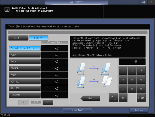 Select Fold 2, and then use the touch panel keypad to enter the set value.