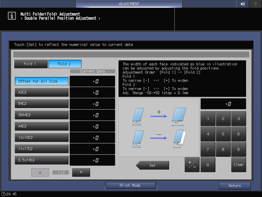 10. Select Fold 2, and then use the touch panel keypad to enter the set value.