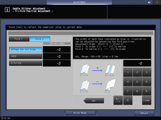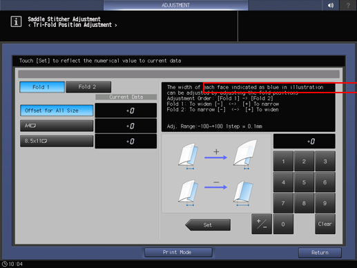 Select Fold 1, and then use the touch panel keypad to enter the set value.
