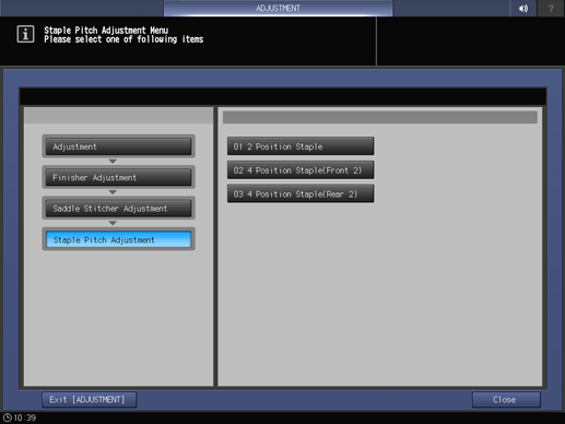 The screen returns to the Staple Pitch Adjustment Menu screen.