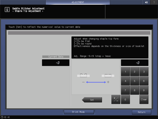 Press Exit PrintMode to return to the Staple Tip Adjustment screen.