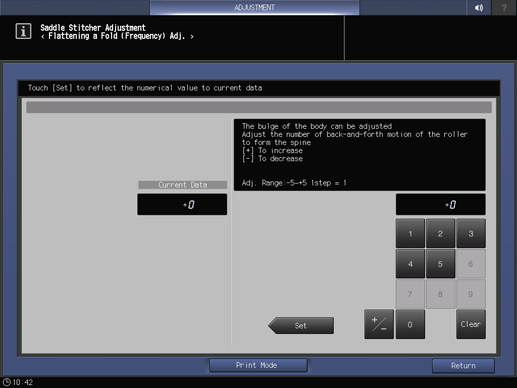Adjust the number of roller reciprocation times when forming the booklet spine using Folding Unit FD-504 mounted in Saddle Stitcher SD-513.