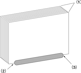 (1) Body set (2) Frontward glue starting position (3) Backward glue starting position
