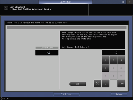 Adjust the home position of the shading shaft to correct any image failure due to dirt on the shading shaft on the back side of the ADF.