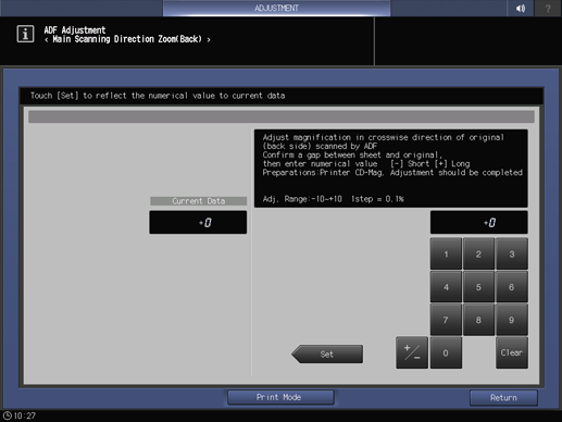 The screen returns to the ADF Adjustment Menu screen.