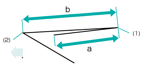When adjusting both Fold 1 and Fold 2, be sure to start with the Fold 1 adjustment. The position of Fold 1 is calculated from the edge of the paper, while that of Fold 2 is calculated from the position of Fold 1. Consequently, the measurement 'b' in Step 1 is subject to the change in either position of Fold 1 and Fold 2.