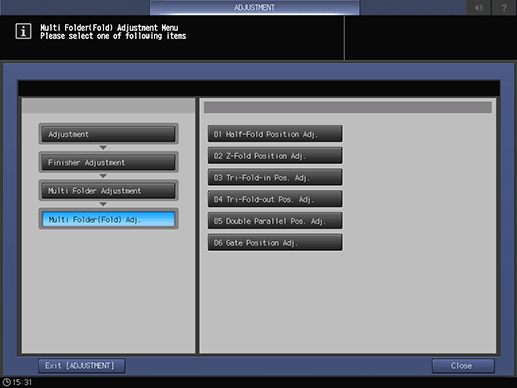 Press Multi Folder Adjustment on the Finisher Adjustment menu.