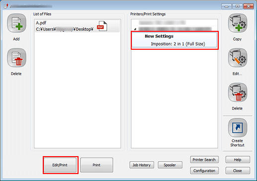 2. If you click Edit/Print or select the print settings of the printer, the printer driver screen is displayed.