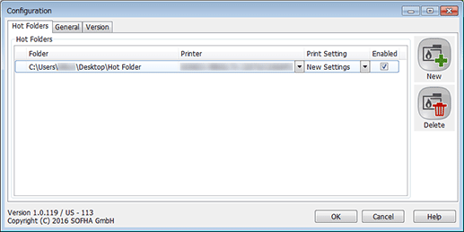 You can use New or Delete to add or delete a folder to be used as a hot folder to or from the list.