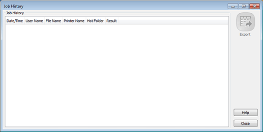 This screen displays the history of print jobs that are processed using Hot Folder.