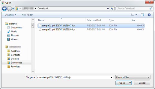 Specify the job to be imported, and click Open.
