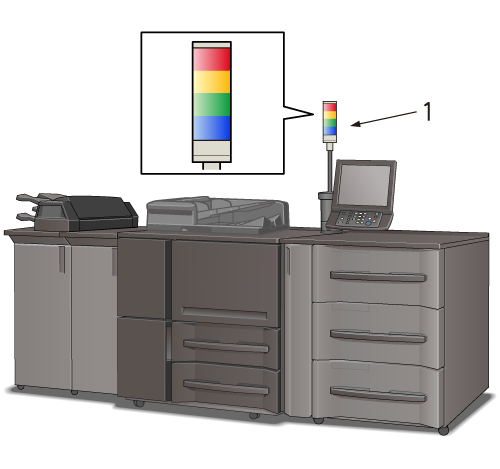 1 | Status LED | Indicates the machine status using four indicator LEDs. Red: Indicates that the machine has stopped for a reason such as a paper jam, no paper, or no toner. Orange: Indicates that a toner replenishment message is currently displayed Green: Indicates that the machine is currently printing. Blue: Indicates that the machine is ready for printing. No light: Indicates that the machine is not ready for printing (the power switch is turned off, the machine is in warm-up mode, etc.). |