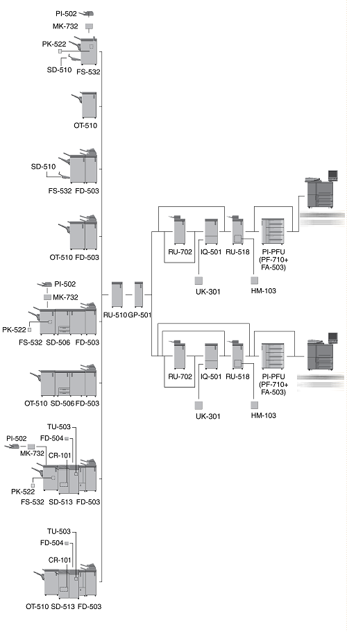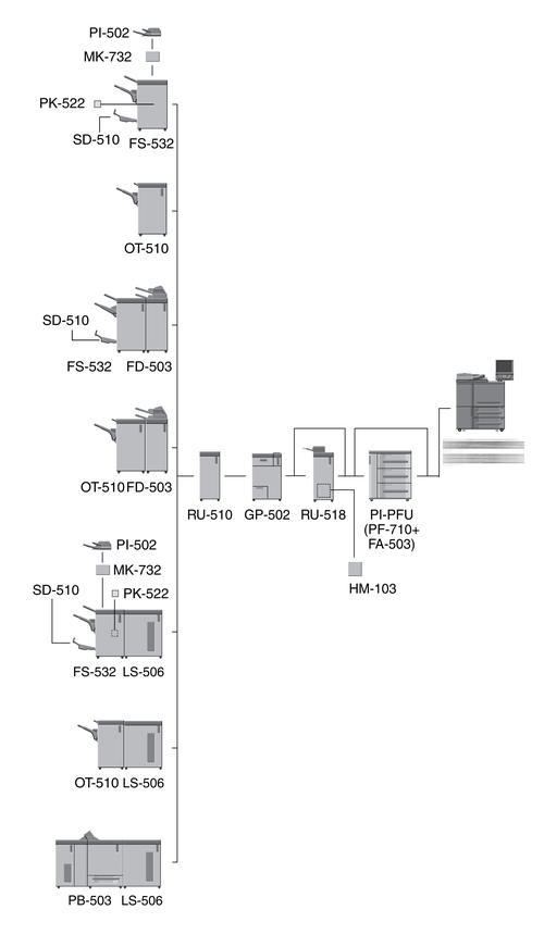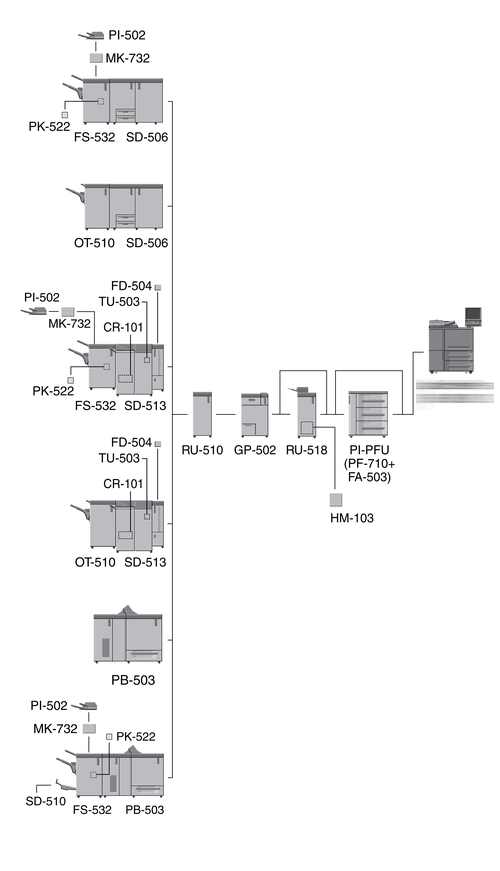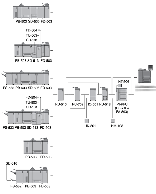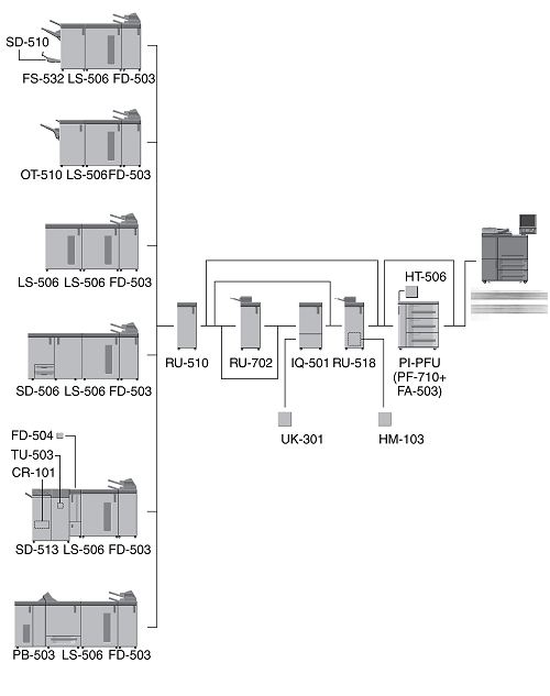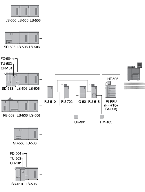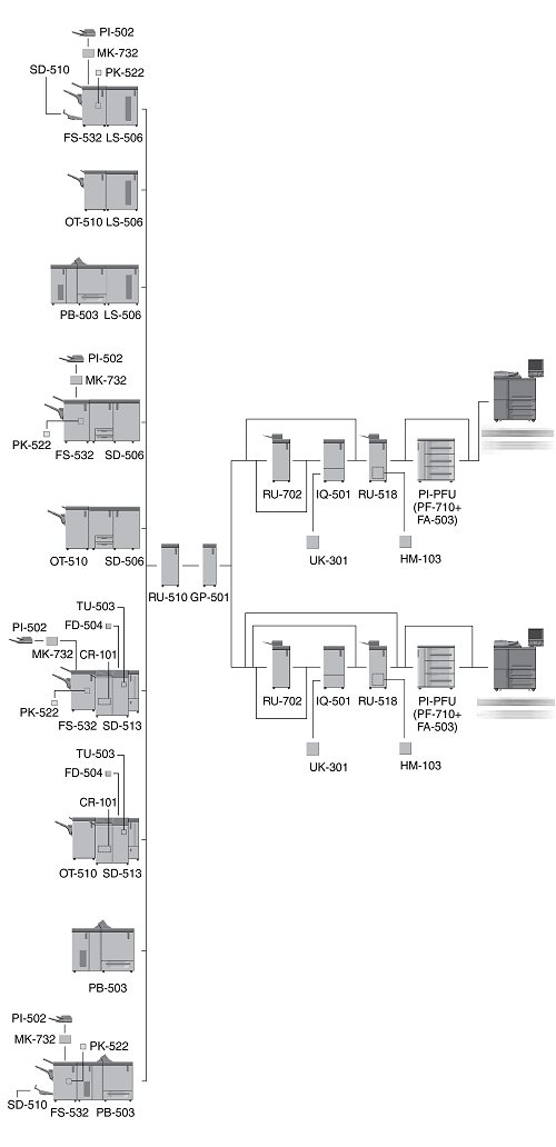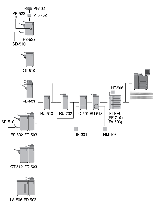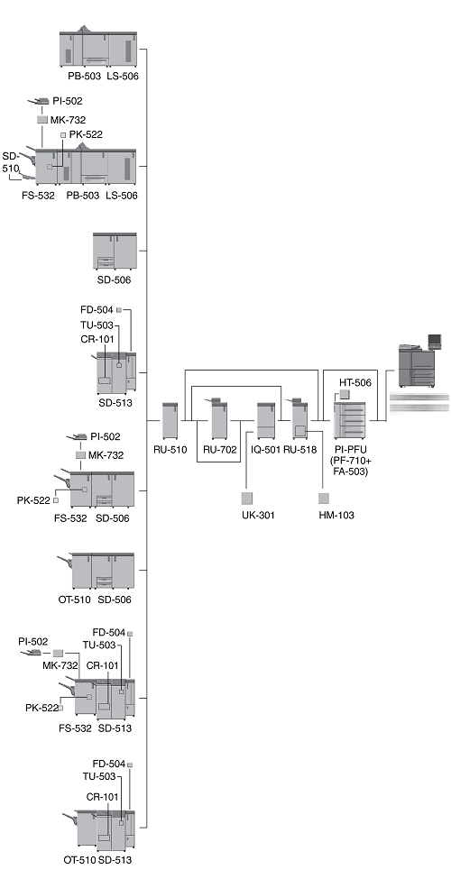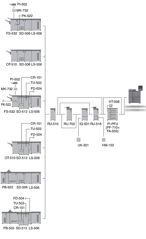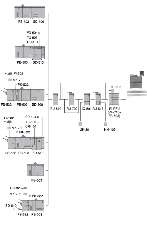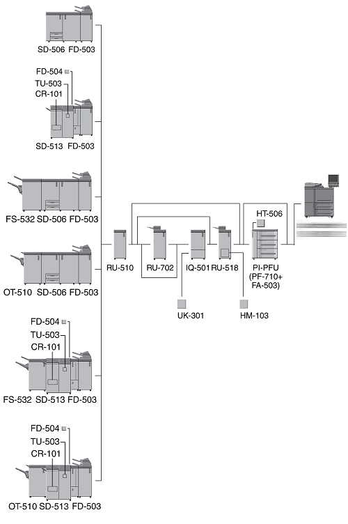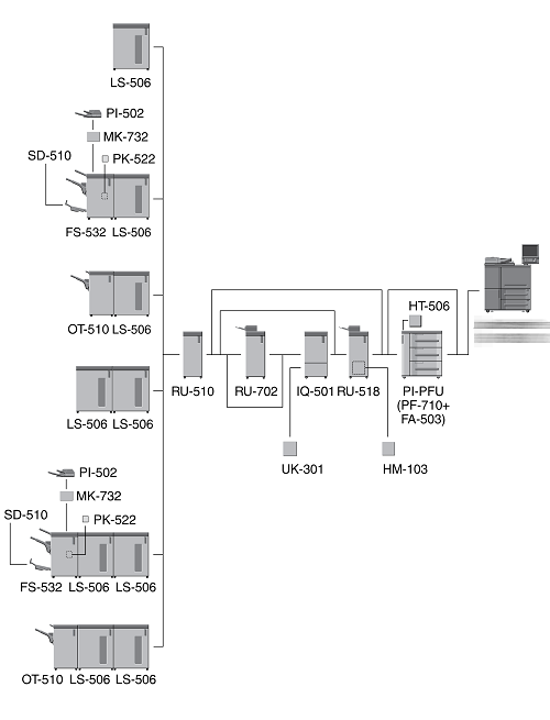 When three units of Paper Feed Unit PF-710 are mounted, Large Capacity Post Inserter PI-PFU cannot be mounted on the machine.