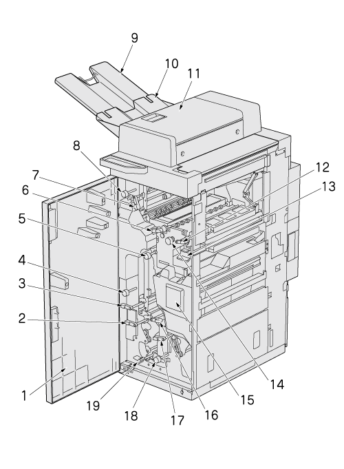 19 | Lever [RU11] | Opens upward for removal of paper jam. |