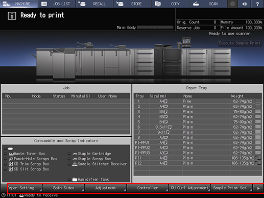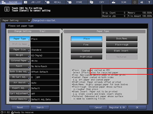 Press Paper Setting on the MACHINE screen.