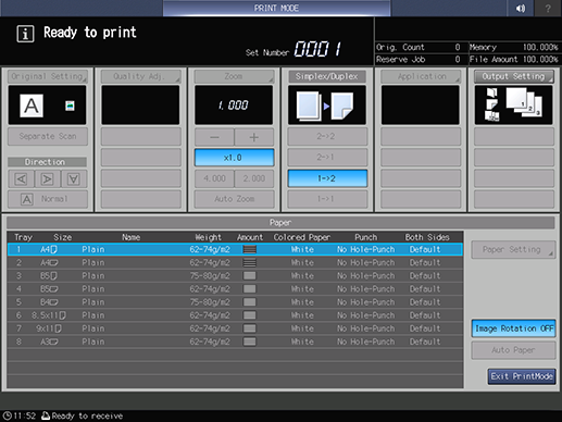 When the PRINT MODE screen is displayed, press Start on the control panel.