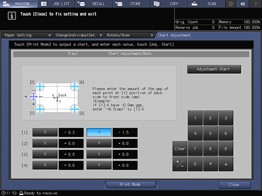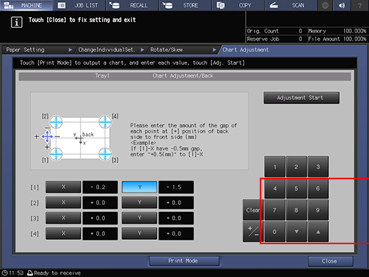 supplementary explanationWhen setting X of 1 to -2.0 and Y to +1.5 using the keypad on the screen, select X in 1, and press 2, 0, and +/- in order. Then, select Y, and press 1 and 5 in order.