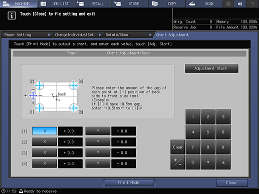When the entry is completed, press Adjustment Start.