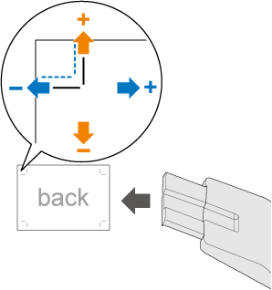 When the image on the back side is misaligned downward by 0.5 mm and rightward by 0.3 mm against that of the front side, enter +0.5 mm in Up/Down and -0.3 mm in Right/Left.