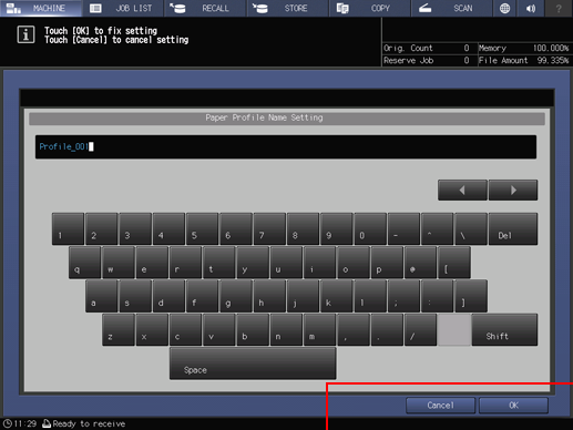 Enter the paper profile name and press OK.