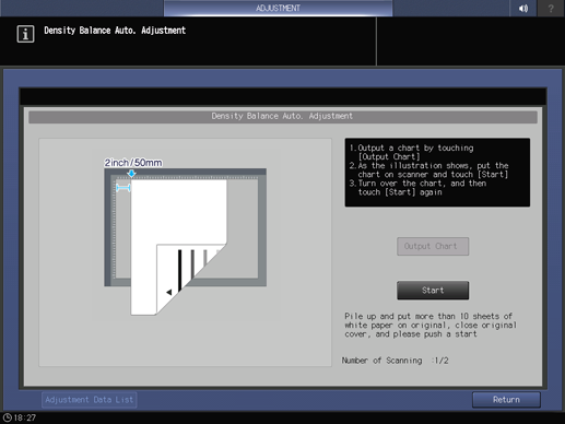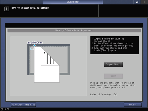 Charts are output, and the Density Balance Auto. Adjustment Result screen is displayed.